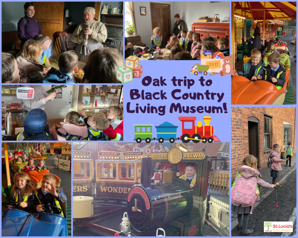 Oak class were lucky enough to go to the Black Country Living Museum on 13th November. We’re guided around by our wonderful guide Jess. Who took the time to show us around many different places. We began in the schoolhouse where we experienced a Victorian Lesson. After that we went to a well-off Victorian house. In here we saw the toys the little boys used to play with we saw a doll, an abacus and a piano.